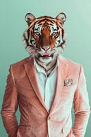 Elegantie ontmoet wildheid: met een imitatie luipaard dat schittert in een fijn, roze pak, belichaamt dit figuur een fascinerende samensmelting van de beschaafde wereld en de ongetemde natuur. De tijgerachtige kop voegt een levendige, onconventionele toets toe aan de strakke zakelijke look en ontketent een aura van natuurlijke autoriteit.