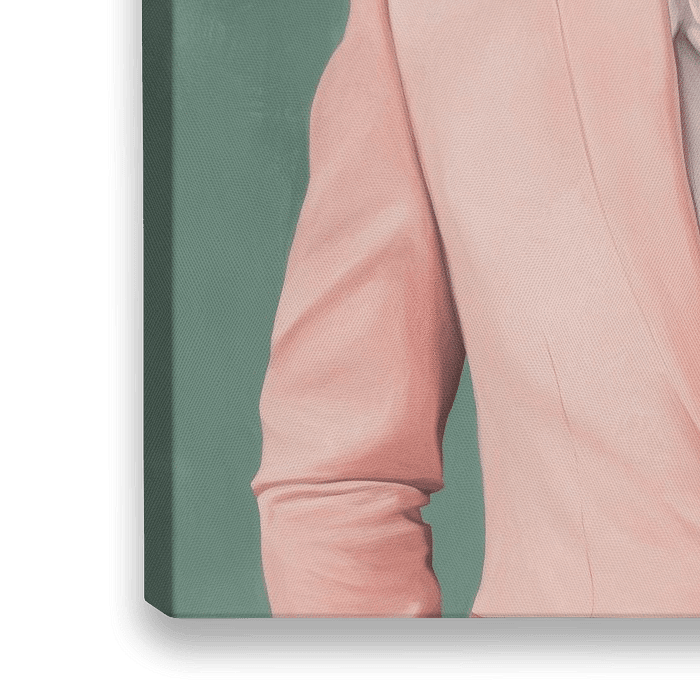 In een fascinerend samenspel van elegantie en wreedheid worden de mens en de majestueuze tijger hier verenigd. Het chique, roze pak contrasteert indrukwekkend met de krachtige tijgerkop, die sierlijk staat voor kracht en dominantie. Deze samensmelting belichaamt de samensmelting van stijl en kracht in een surrealistische droom.