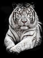 Prachtige tijger liggend tegen een zwarte achtergrond