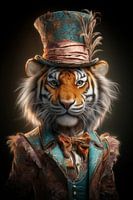 Deze tijger met hoge hoed ziet eruit als een echte heer en is een prachtige fantasiewerk in heerlijk rustige kleuren. Dit werk leent zich uitstekend om af te laten drukken op plexiglas.