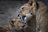Koop dit leeuwen kunstwerk Tijger moeder likt jonge welp van Chi als print op canvas, aluminium dibond, (ingelijste) fotoprint, behang en ArtFrame. Voor jou op maat geprint in Fine-Art kwaliteit.