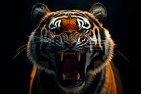 Een krachtige blik in het wild: de indrukwekkende grote kat vangt de kijker met zijn onverschrokken gebrul en majestueuze manen. De intense kleuren en gedetailleerde afbeelding geven dit kunstwerk een dynamische energie. Ideaal voor in de woonkamer, waar het een gesprek kan stimuleren en een geest van avontuur kan verspreiden.