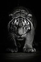 Een majestueuze tijger met een doordringende blik en krachtige poten die uit de schaduwen tevoorschijn komt, straalt een onmiskenbare allure uit. Zijn gedurfde strepen en contrasterende zwart-witte look geven het kunstwerk een dramatisch tintje. Ideaal voor in de woonkamer, waar het zowel rust als dorst naar avontuur symboliseert en…