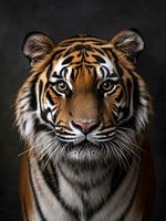 Een majestueuze tijger kijkt spookachtig in de camera, zijn opvallende strepen en intense ogen stralen kracht en gratie uit. Deze fascinerende display brengt een woestheid in elke kamer en is perfect voor een woonkamer die avontuur en elegantie wil uitstralen. Een echte blikvanger die gesprekken stimuleert!
