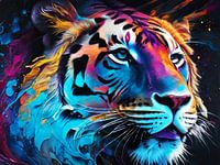 AI gegenereerd en door mij bewerkt gekleurd schilderij van een tijgerkop.