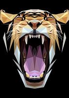 Abstracte dierenillustratie van Tijgerkop Boos close-up, lage poly art illustratiestijl met zwarte achtergrond