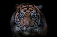 Mooie scherpe tijgerkop op zwarte achtergrond, met mooie kleuren