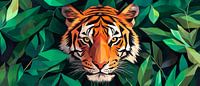 Een majestueuze tijger kijkt uit het weelderige groen, zijn fel oranje en zwarte strepen springen onmiddellijk in het oog en stralen kracht en elegantie uit. Dit krachtige motief brengt levendige energie in elke woonkamer of kantoor en voegt een vleugje wildheid en natuur toe aan de kamer.