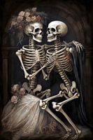 Surrealistisch fantasie portret van een bruid en bruidegom geraamte.