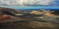 Dit lavalandschap op Lanzarote is alleen per bus te doorkruisen. Je waant je op een andere planeet, bijv. Mars. Foto door de bus van de ruit genomen, maar met Photoshop kun je de contrasten goed herstellen.