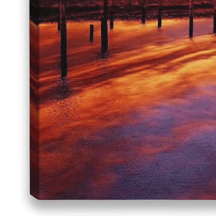 Reflectie van een intense zonsondergang op het Veerse Meer in Zeeland met paarse en diep rode kleuren