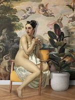 Op het eerste gezicht is dit een klassiek schilderij met een vrouwelijk naakt en engelen van lang geleden.
