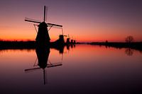 Een fraaie zonsopkomst bij de molens van Kinderdijk.