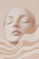De betonstructuur van de vrouw contrasteert prachtig met de zachtheid van de kleuren en de vloeiende lijnen om haar heen. Dit contrasteffect symboliseert de eeuwige kracht van de natuur tegenover de onvergankelijke, maar niettemin breekbare menselijke vorm. Het werk straalt een gevoel van rust en eeuwigheid uit, alsof de vrouw zich in een tijdloze, serene ruimte bevindt, waar verleden, heden en toekomst in harmonie samenkomen. "Timeless Flow" is een evocatief kunstwerk dat zowel de kracht als de vergankelijkheid van het bestaan verkent.