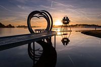 Het kunstwerk Timeline in Slijk-Ewijk tijdens een prachtige zonsopkomst op een rustige ochtend in het najaar.