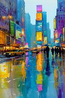 Vang de unieke magie van New York met dit schitterende schilderij dat de iconische sfeer van de stad die nooit slaapt tot leven brengt. De felgekleurde lichtreclames, drukte van Times Square en glinsterende regenreflecties creëren een dynamisch en energiek beeld dat direct doet denken aan het bruisende hart van Manhattan.