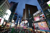 Times Square in New York. Het plein ligt op de kruising van Broadway en Seventh Avenue tussen West 42nd Street tot West 47th Street. Onder het plein ligt het metrostation Times Square-42nd Street.