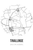 Zwart-witte landkaart, stratenplan of plattegrond van Tinallinge. Tinallinge is gelegen in de gemeente Het Hogeland, provincie Groningen. Op de stadskaart zijn alle openbare wegen in Tinallinge opgenomen. Verder is de kaart voorzien van de coördinaten van het centrum van Tinallinge.