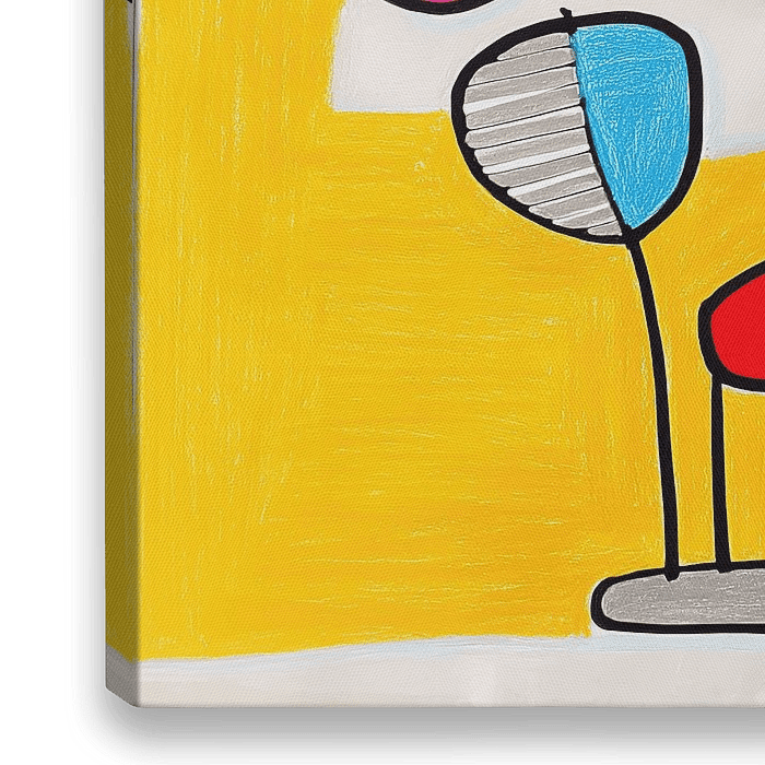 Een speelse abstracte compositie met krachtige vormen en levendige kleuren. Door de sterke contouren en geometrische balans straalt het werk zowel eenvoud als moderne elegantie uit.