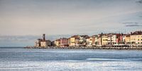 De prachtige stad Piran in Slovenië ligt met een punt in de zee.