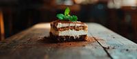 Tiramisu op een rustieke houten tafel van Poster Art Shop