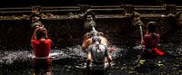 Rituele reiniging met water uit de heilige bron in de tempel Tirta Empul op Bali.