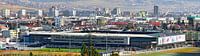 Uitzicht op het voetbalstadion Tivoli en de Innsbruckse wijk Pradl, Oostenrijk.