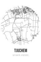 Koop de illustratie Tjuchem (Groningen) | Landkaart | Zwart-wit van Stad & Wand op canvas, aluminium dibond, (ingelijste) fotoprint, behang en ArtFrame, op maat geprint in Fine-Art kwaliteit.