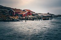 Zweeds huis aan zee, vissershut met boot