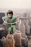 Samen vormen ze een surrealistisch, retro en grappig portret van een kind, fietsend door de grote (maar tevens zo kleine) stad.