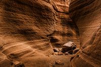 Tobas de Colores del Barranco de las Vacas is een verborgen juweeltje op Gran Canaria dat bekendstaat om zijn unieke, kleurrijke rotsformaties. Gelegen in de gemeente Agüimes, in het zuidoosten van het eiland, is deze kleine kloof een adembenemend natuurfenomeen waar de eeuwenoude lagen vulkanisch gesteente in warme tinten van oranje, roze en bruin je meenemen naar een bijna buitenaardse wereld. Deze sfeerfoto toont de kronkelende, gladde rotswanden van Barranco de las Vacas, die door de jaren heen zijn uitgesleten door wind en water, en laat zien waarom dit verborgen plekje steeds meer populair wordt onder avontuurlijke reizigers en fotografen.