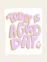 'Today is a good day.' Positieve quote in vrolijke letters.