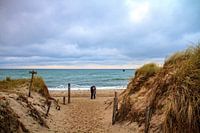 Strandtoegang op het westelijke strand van het schiereiland Fischland-Darß-Zingst. Dit is de strandopgang bij de vuurtoren van Darßer Ort, genomen in de tweede helft van november 2021.