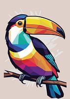 Dit pop-art toekanportret barst van de tropische levendigheid - zijn iconische regenboogsnavel is weergegeven in elektrische neonkleuren en contrast. De oversized kenmerken en funky patronen brengen retro cool en jungle vibes in perfecte harmonie. Deze kleurrijke vogel is ideaal voor gewaagde interieurs en straalt warmte, humor en exotische aantrekkingskracht uit in één onvergetelijk visueel statement.