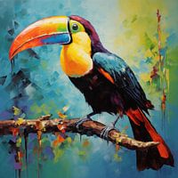Unieke toekan abstract schilderij met een prachtige stijl. Met prachtige kleurtinten en een uniek ontwerp maakt dit tot een stijlvolle fotoprint die prachtig staat in elke ruimte.