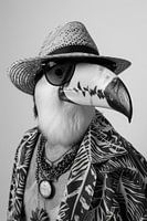 Toekan met hoed en zonnebril in zwart en wit van Poster Art Shop