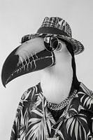 Een portret van een toekan in modieuze kleding en accessoires, waaronder een hoed en bril. Perfect voor stijlvolle en creatieve portretten.
