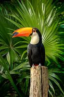 Het mooiste kenmerk van de toekan is de grote maar toch vederlichte oranje snavel, die soms half zo lang is als het dier zelf.