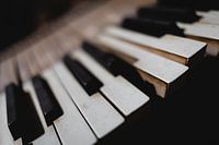 Deze verweerde piano was ooit een pronkstuk in het museum, maar stond nu verlaten in een grote loods in Groenland. De zwart witte toetsen (niet) klaar om bespeeld te worden.