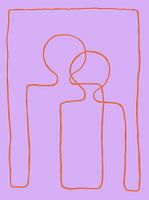 Together One, komt uit de serie, familie-lijntekeningen. Deze tekening geeft de bijzonder sterke verbondenheid van een liefdespaar weer. Deze personen zijn verbonden door één lijn wat de krachtige band nog meer benadrukt.