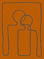 Together One, komt uit de serie, familie-lijntekeningen. Deze tekening geeft de bijzonder sterke verbondenheid van een liefdespaar weer. Deze personen zijn verbonden door één lijn wat de krachtige band nog meer benadrukt.
