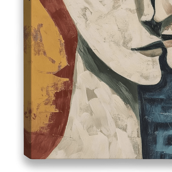 Twee silhouetten, eenvoudig van vorm maar krachtig in hun uitstraling, staan dicht bij elkaar in een intiem en verstild moment. De vormen vloeien in elkaar over en worden gedragen door een palet van warme, neutrale tinten: zand, terracotta en zachtbruin. Door de abstracte benadering ontstaat er ruimte voor interpretatie — zijn het…