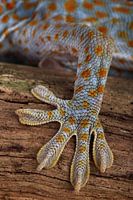 Een close-up van de kleurrijke poot van een Tokeh. Deze prachtige gekko is een nachtactieve boombewoner uit Azië.