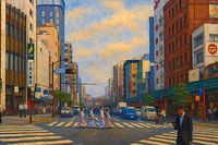 Het kunstwerk is uitgevoerd in olieverfstijl, met karakteristieke penseelstreken en levendige kleuren.