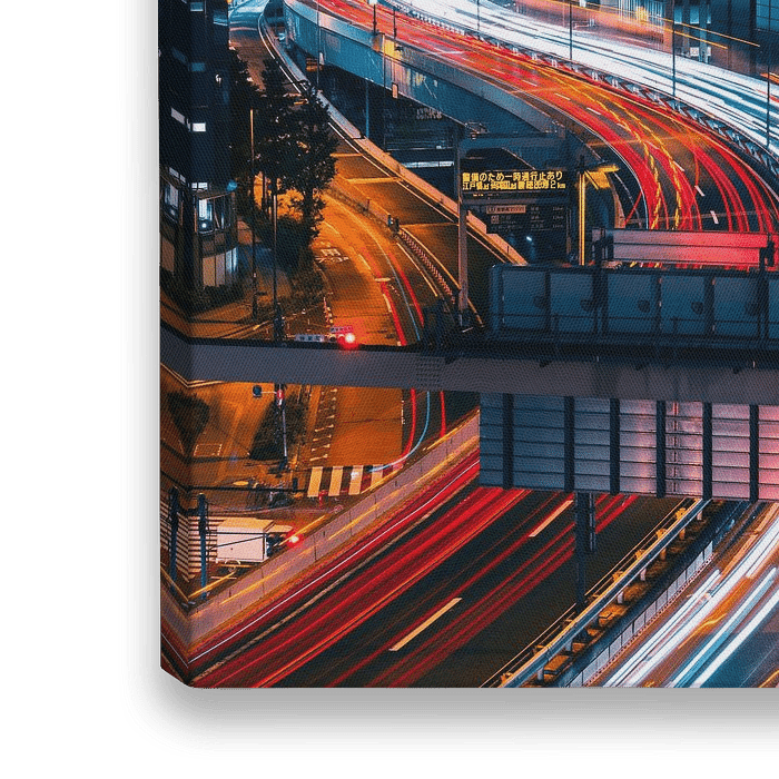 Vanuit een trappenhuis in Shibuya, hadden we dit mooie overzicht over deze snelweg die door Tokyo loopt. Door te werken met een lange sluitertijd ontstaat er dynamiek in de foto en lopen de lichtstrepen van de auto's als een S-bocht door de foto.
