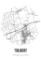 Zwart-witte landkaart, stratenplan of plattegrond van Tolbert. Tolbert is gelegen in de gemeente Westerkwartier, provincie Groningen. Op de stadskaart zijn alle openbare wegen in Tolbert opgenomen. Verder is de kaart voorzien van de coördinaten van het centrum van Tolbert.