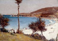 Dit kunstwerk suggereert Roberts' primaire zorg voor de natuurlijke effecten van het landschap. Het is een vroeg testament van Roberts 'plein-air' impressionistische 'techniek, die de schittering van de zon op de helderblauwe zee, gebleekt wit zand, droog gras en spichtige kustvegetatie oproept.