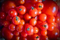 Close-up van een verzameling van verschillende afmetingen tomaten als basis voor de Italiaanse keuken.
