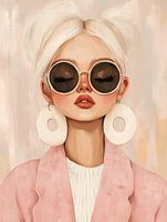 Dit portret vangt het gevoel van iemand die zo cool is, dat ze letterlijk even haar ogen moet sluiten voor de wereld. Met haar oversized zonnebril, ronde oorbellen en twee strakke knotjes, lijkt ze klaar om elk fashion-event met gesloten ogen te trotseren. Haar outfit schreeuwt: "Ik ben hier niet om te praten, maar om indruk te maken." Ze heeft het soort nonchalante flair dat zegt: "Waarom zou ik me druk maken als ik er al fabulous uitzie?"