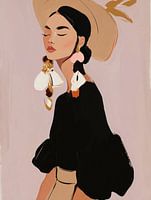 Ze hoort álles, dankzij die oorbellen ter grootte van satellietschotels. Maar haar ogen zijn gesloten en haar blik zegt: “Vandaag even niet, schat.” Een ode aan elegante onverschilligheid en modieuze grenzen stellen.